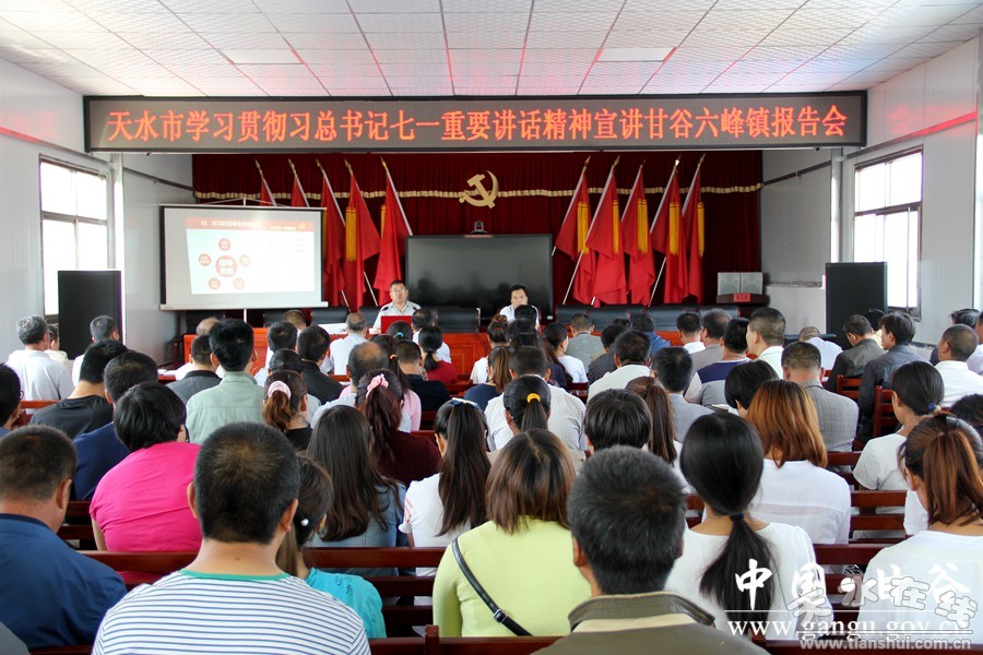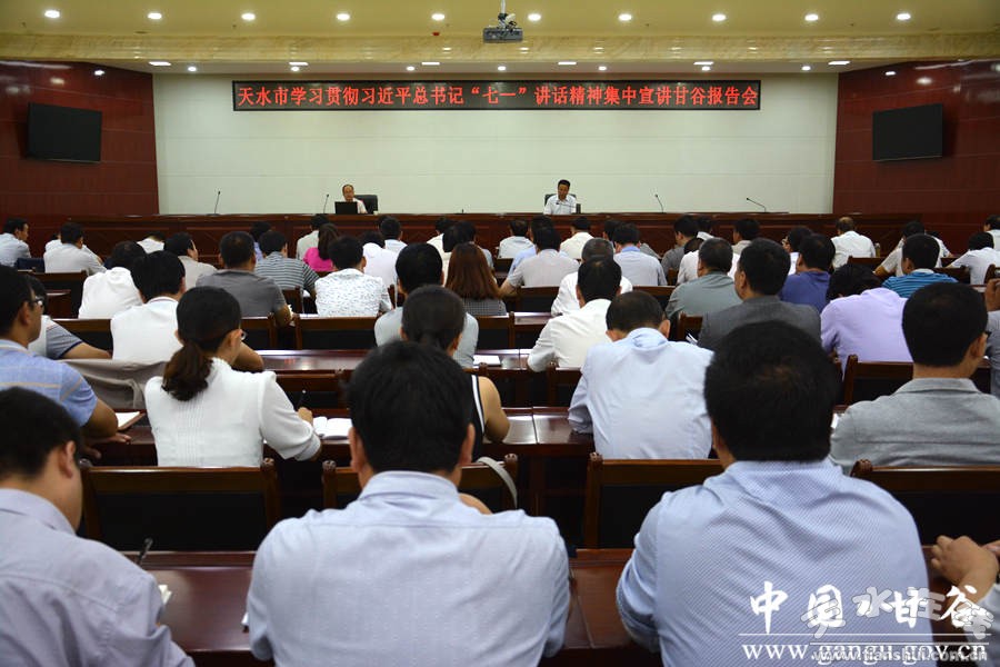 9月1日,天水市委讲师团团长郭黎平带领宣讲团深入甘谷宣讲习近平总书记“七一”重要讲话精神。县四大组织在家领导,各乡镇、各部门、各单位科级以上领导干部共计320多人在主会场聆听了辅导报告。县委常委、宣传部长张庆元主持报告会。