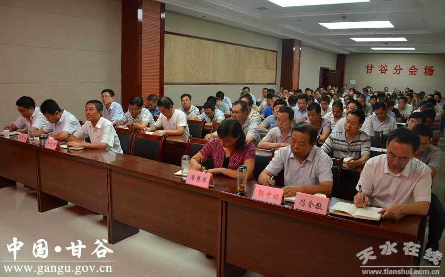 甘谷县委书记贾忠慧,县委副书记、县长申君明,县委常委、统战部长潘慧琴,副县长牛武军、郭中校、葛彦迪、冯全敬及各乡镇、县直各部门、部分重点企业负责人在甘谷分会场收听收看会议。