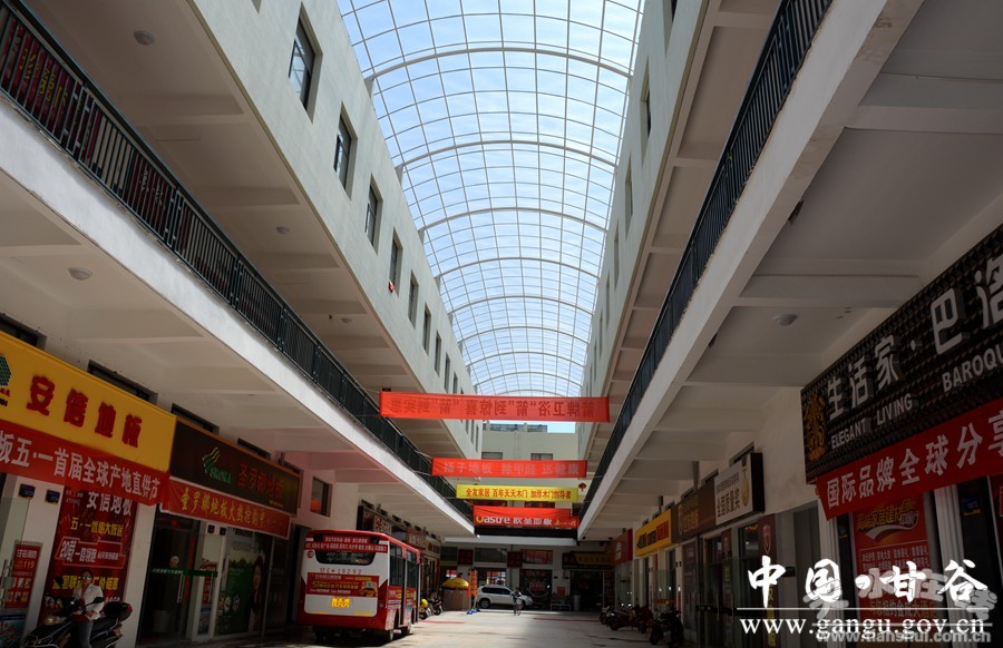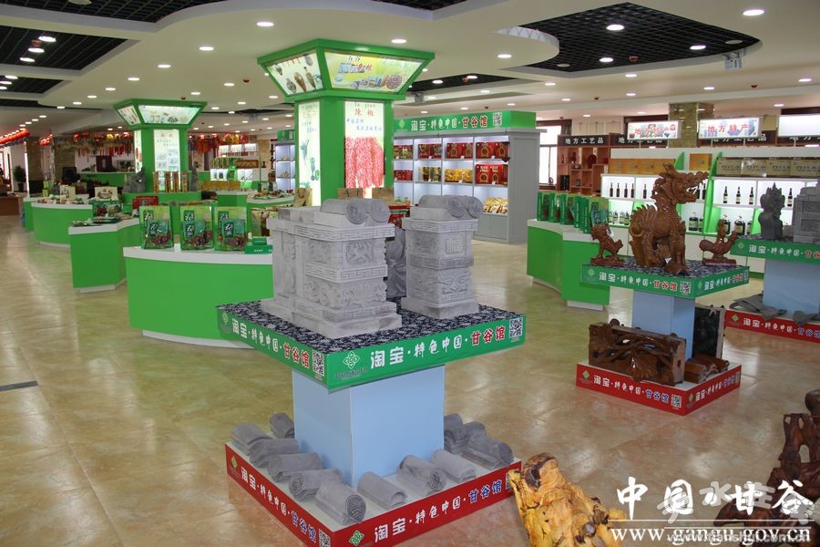 家家店铺流光彩,条条横幅架长虹。物流中心装饰得非常漂亮,像是一座艺术的殿堂。走进位于中心一侧的甘谷县电子商务服务中心,这种感觉就尤其强烈。这是一个电商平台的线下实物展示中心。各式各样的商品,琳琅满目地摆放着,无论从哪个角度看过去,都让人赏心悦目。工作人员介绍,这里进驻了两家电商企业,一家就是甘谷县供销社所属的公司。