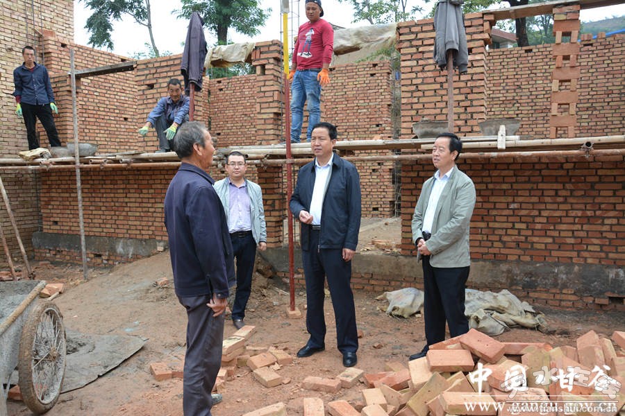 9月20日,甘谷县委常委、宣传部长张庆元带领县卫计局负责人深入武家河镇督查贫困村标准化卫生室建设工作。