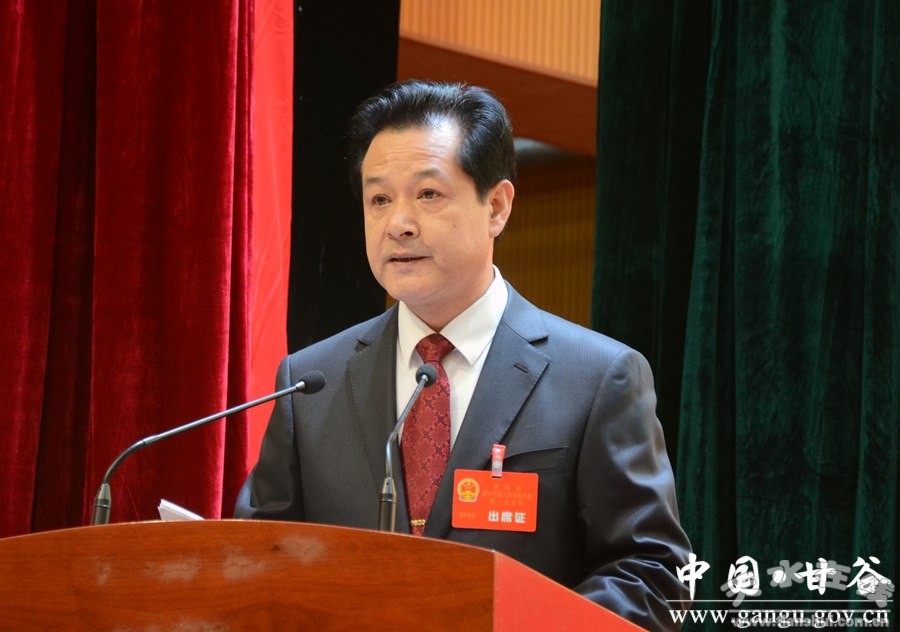 申君明说,过去五年,我们全面聚焦扶贫攻坚,统筹多方资源精准发力,脱贫步伐不断加快。先后投入40.5亿元,全力推进4大片带16个流域连片综合开发,农村基础设施、富民产业、公共服务全面提升;农村自来水覆盖率由2011年不足30%提高到90%,行政村水泥路实现全覆盖,改造农村危旧房11740户,自然村全部通上了动力电;建成标准化村卫生室296个、文化室144个,金融便民服务点、扶贫互助协会实现全覆盖;为21478户贫困户发放精准扶贫专项贷款10.86亿元,培训贫困对象4.88万人,组织输转劳务55万人次,创劳务收入68亿元,贫困人口人均可支配收入年均增长17.78%,高于全县农民人均收入增幅3个百分点;减少贫困人口17.4万人,贫困发生率由43.16%下降到12.64%。坚持项目带动战略,千方百计争投资上项目,发展基础更加坚实。先后实施重点项目457个,其中过亿元项目45个,累计完成投资332亿元,是“十一五”时期的6倍;引进招商引资项目70个,到位资金127亿元;甘谷物流园、大像山文化园、六峰工业园、现代农业示范园四大园区初具规模;西城区开发建设、整流域综合开发、城市基础设施、农村饮水安全、城乡幼儿园建设成效显著,浙江商贸城、仿古文化街、冀城大酒店等一批重大招商引资项目落地实施,项目规模和投资数额均创历史新高。积极转变发展方式,着力优化结构提升效益,三次产业融合共进。产业结构由31∶36∶33调整到28∶32∶40,第三产业增加值占GDP的比重超过第二产业,经济运行的质量和效益显著提升。现代农业步伐加快,粮食总产量突破20万吨,实现“十二连增”;建成了省级现代农业示范园,蔬菜种植面积年均增长1万亩以上;新建优质果品基地20万亩;建成标准化规模养殖场78个,蔬菜、果椒、养殖业总产值达到28.77亿元,是“十一五”末的2.6倍;农业基础条件明显改善;建成了东北部人饮、南部山区人饮、西北人饮扩网等8处农村饮水安全工程,解决了32.7万人的饮水安全问题。工业经济稳步发展,六峰工业园聚集效应日益显现,入园企业达到22户;新培育规模以上企业12户,6户进入全市“10强50户”行列;“甘谷辣椒”获得国家地理标志保护产品认证,“大漠行”麻鞋认定为中国驰名商标;建成了城区生活污水处理厂,完成了大唐甘谷发电厂、祁连山水泥公司生产线脱硫脱硝改造。第三产业繁荣活跃,高起点规划建设甘谷物流园,落地实施了浙江商贸城、农产品冷链物流中心、陇东南汽配城、县客运中心等一批大型商贸项目;新建改造乡镇综合市场7处,建成农家店、便民店、农资连锁店350个;建成了县、乡、村三级电子商务服务中心、站点111个,新增电商企业122家;我县被确定为国家级供销合作社综合改革试点县,“社企分开”“双线运行”“三社合一”等创新举措为全省供销改革探索了新路子;“先照后证”“三证合一”“营改增”等改革措施全面落实,各类市场主体超过1.6万户;实施了大像山山体亮化和古建维修工程,大像山成功创建为国家4A级旅游景区。着眼城乡协同发展,努力拓展空间完善基础,城乡面貌显著改观。县城第三版总体规划编制完成,县城建成区面积扩大到15平方公里,城镇化率达到41.2%;新建改造城市主次干道13条,城区“五纵九横”路网骨架基本形成;新建了西关供热站和南滨河路供热站,完成了水质深度处理、供水管网改造、应急水源建设等工程,改造硬化城区小巷道26万平方米,群众取暖、吃水、出行条件大为改善;建成行政服务中心和甘谷大剧院,实施了南滨河路景观绿化工程,新开发商业住宅102万平方米;磐安、六峰被列为省市级新型城镇化试点镇,金山、礼辛、大石、大庄、武家河完成撤乡改镇;美丽乡村创建扎实推进,创建省市级美丽乡村示范村11个,省级生态乡镇4个,甘谷被评为全省改善农村人居环境工作优秀县区;全面改造了4条县乡公路,建成了杨赵渭河大桥、六峰渭河大桥、沙沟大桥,新修通村水泥路362条1176公里。始终坚持民生为大,竭力办好各项惠民实事,群众福祉持续增进。先后投入民生领域资金85.4亿元,占公共财政预算支出的80%以上;高考成绩持续在全市领先,教育工作通过省政府督导评估,获得优秀等次;无偿划拨教育用地289亩,新建改造校舍28.69万平方米,公办幼儿园增加到65所;建成体育健身中心6个、农村文化大院10个、“乡村舞台”281个;公立医院改革有序推进,大病保险全面实施;建成了县医院住院楼和县急救中心;甘谷成功创建为国家级计划生育优质服务县;新建改造村级综合服务中心235个; 2478名高校毕业生在县内稳定就业,新增城镇就业3.4万人;建成各类保障性住房2814套25.6万平方米;城市低保、农村低保、农村五保人均补助水平分别提高158%、119%、193%,五年发放各类救助救济资金9.5亿元;建成了县儿童福利院、谢家湾中心敬老院、金山中心敬老院,新建农村互助老人幸福院135个;“六五”普法扎实有效;深入推进“平安甘谷”建设,社会大局和谐稳定;安全生产形势总体平稳;军地军民团结,民族宗教和顺,连续七次被评为全省双拥模范县,地震、档案、地方志、气象、老龄、妇女儿童、残疾人等工作都取得了新的成效。注重政府自身建设,持续转变作风提高效能,服务能力全面提升。群众路线教育实践、“三严三实”专题教育、“两学一做”学习教育扎实深入,中央八项规定精神、国务院“约法三章”从严落实,全县“三公”经费逐年下降,政风行风持