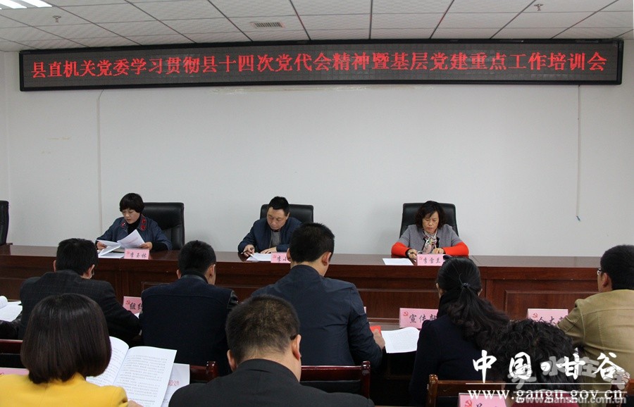 为认真贯彻落实甘谷县第十四次党代会精神,切实做好基层党建各项重点工作,10月25日,甘谷县直机关党委召开学习贯彻县第十四次党代会精神暨基层党建重点工作培训会。县直机关工委负责人及县法院党总支,县委办、县人大办、县政府办、县政协办等党支部党务干部共计50余人参加会议。