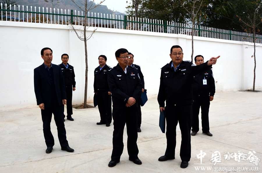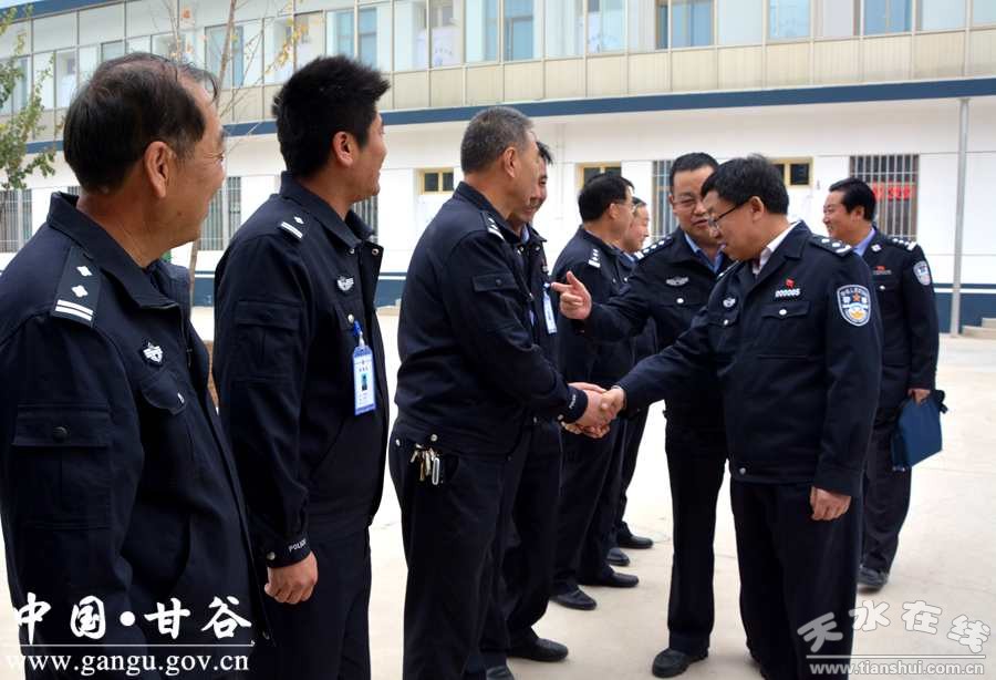 11月4日,甘肃省公安厅党委委员、副厅长李晓林,监管总队队长郭庆祥带领督查组深入甘谷县督导检查公安监管工作。市公安局党委副书记柳润泰,县委常委、政法委书记冯全敬及县公安局负责人陪同。