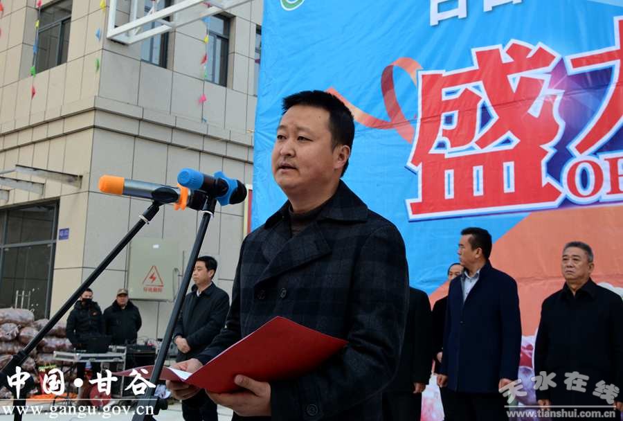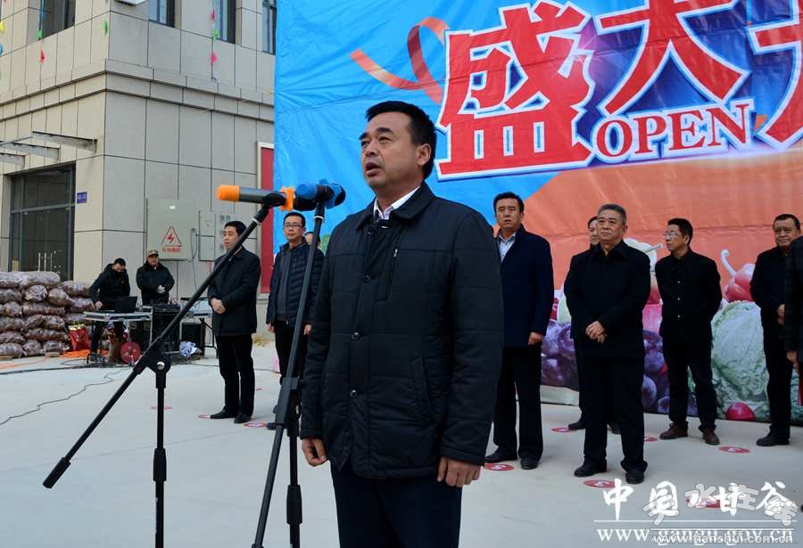 (县委副书记任佩光宣布甘谷果品蔬菜交易中心正式开业)