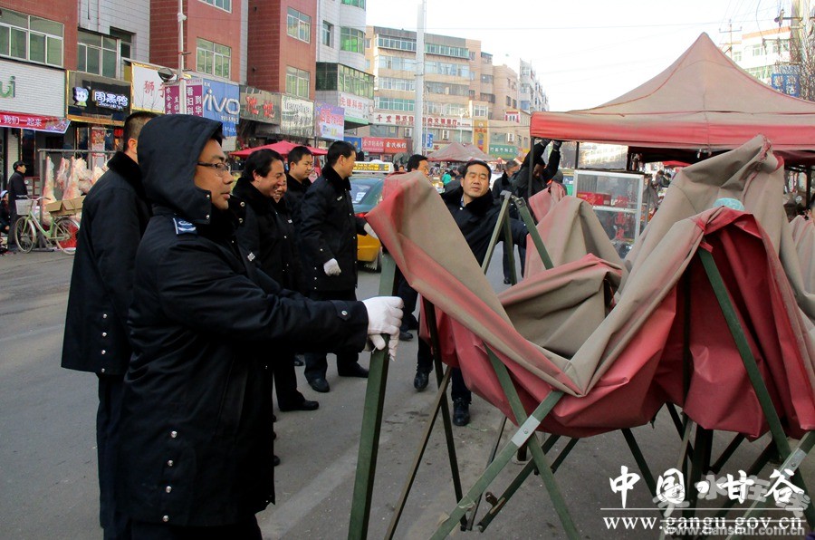 连日来,甘谷县执法局针对城区主要交通干道部分摊贩占道经营,影响市容环境等问题,采取疏堵结合、划线经营、规范管理等方式,全力开展集中整治行动。
