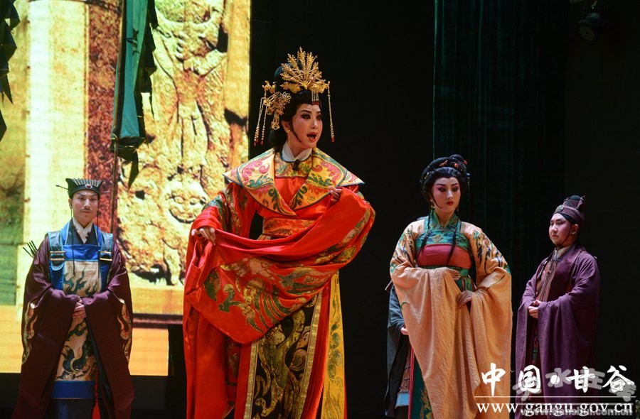 在委婉动人的序曲中,绿色纱幕徐徐拉开,舞台上精美绝伦的造型布置大气厚重,就像一位饱经沧桑的历史老人,讲述着一部演绎了千年的传奇……