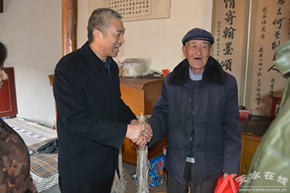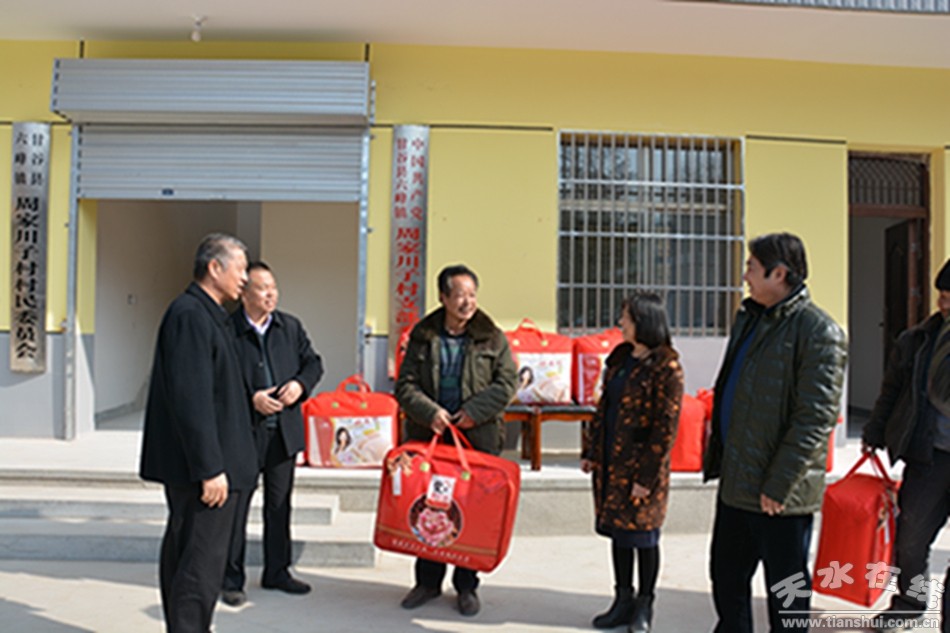 1月15日,在春节来临之际,天水市文旅局领导带领帮扶队长和双联工作人员赴甘谷双联点谢家湾乡沟滩村和六峰镇周家川子村开展春节慰问活动。为双联村新落成的村委办公大楼送去新办公桌椅14套,走访慰问了部分五保户和特困户,送去棉被等生活慰问品,把党的富民政策和关怀传达到了每位困难户家中,鼓励他们在新的一年里增强致富信心,拓宽致富路子,争取早日脱贫。