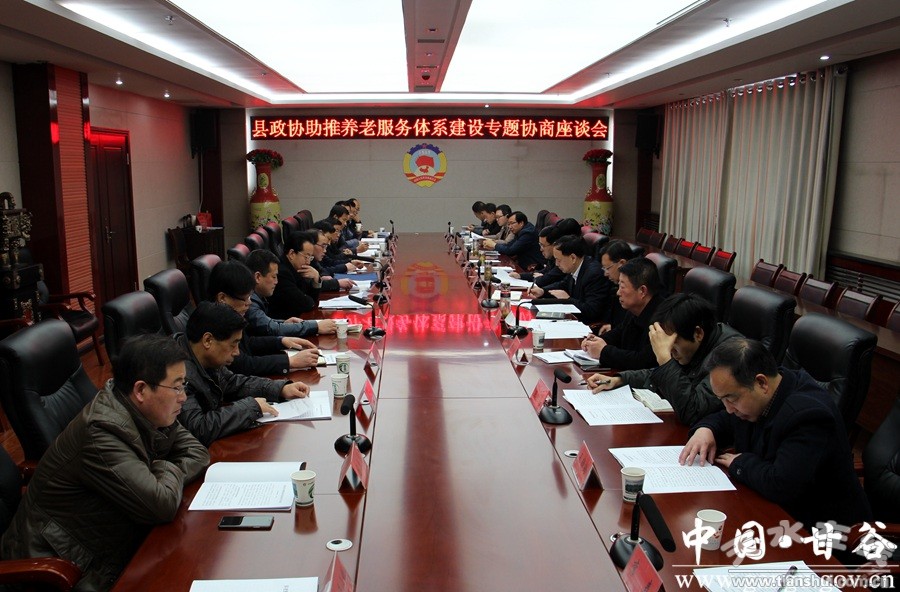 3月21日,甘谷县政协主席马骥主持召开助推养老服务体系建设专题协商座谈会。县委常委、副县长王志高,县政协副主席陈旭、董成斌、郑建子出席会议;部分乡镇、县直相关部门负责人及部分政协委员参加会议。