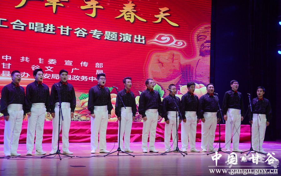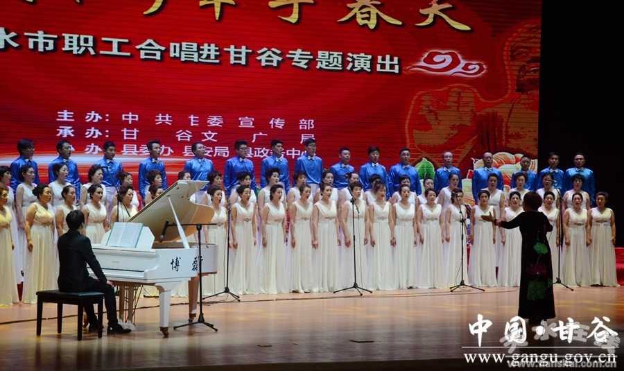 4月28日晚,甘谷大剧院光影交织,歌声嘹亮。由中共甘谷县委宣传部主办,县文广局、天水市职工合唱团共同举办的“臻美和声·牵手春天”走进甘谷专场演出在这里激情上演。县委书记贾忠慧、县政协主席马骥等县四大组织领导和部分干部职工、各界群众1000多人一同观看演出。