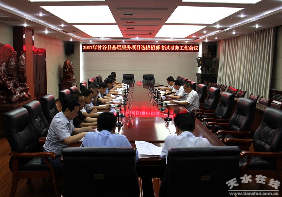 7月3日,甘谷召开2017年基层服务项目选拔招募考试考务工作会议。 县委常委、常务副县长孟晓龙出席会议;县人社、公安、卫生、教体、交警、执法等考试领导小组成员单位及各考点负责人参加会议。