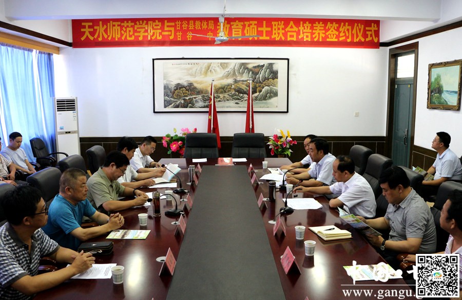 7月18日,天水师范学院与甘谷一中举行教育硕士联合培养签约仪式。学院党委书记马建东,学院党委常委、组织部长马超,学院校办主任张维栋,学院研究生处处长左国防,县委书记贾忠慧出席仪式;县委副书记汪聚应主持仪式;县教体局及甘谷一中有关负责人参加仪式。
