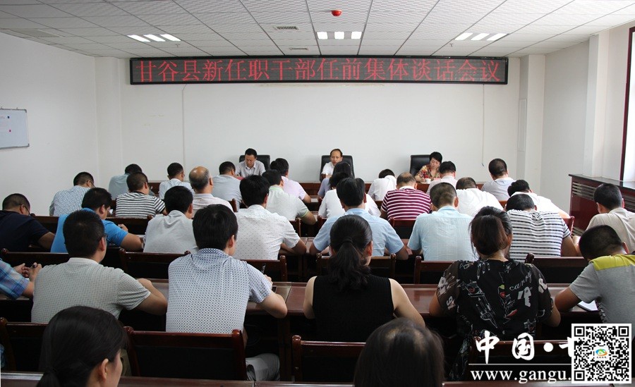 8月3日,甘谷县召开新任职干部任前集体谈话会议。县委书记贾忠慧,县委常委、纪委书记谢辉,县委常委、组织部长冯建新出席会议。