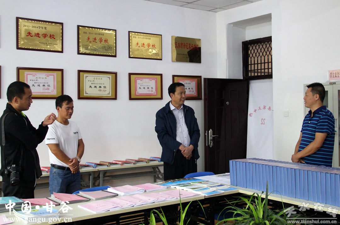 8月25日,甘谷县委常委、宣传部长张庆元深入甘谷三中督查迎接国家义务教育均衡发展督导评估准备工作。