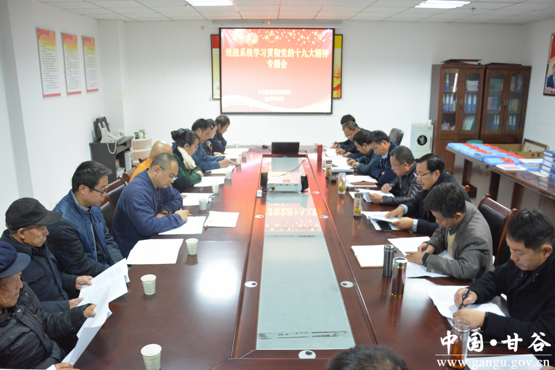 10月31日,甘谷县召开统战系统学习贯彻党的十九大精神专题会议。县委常委、统战部长王刚出席会议并讲话,县委统战部、宗教局、工商联、民盟、农工党及县宗教团体负责人参加会议。