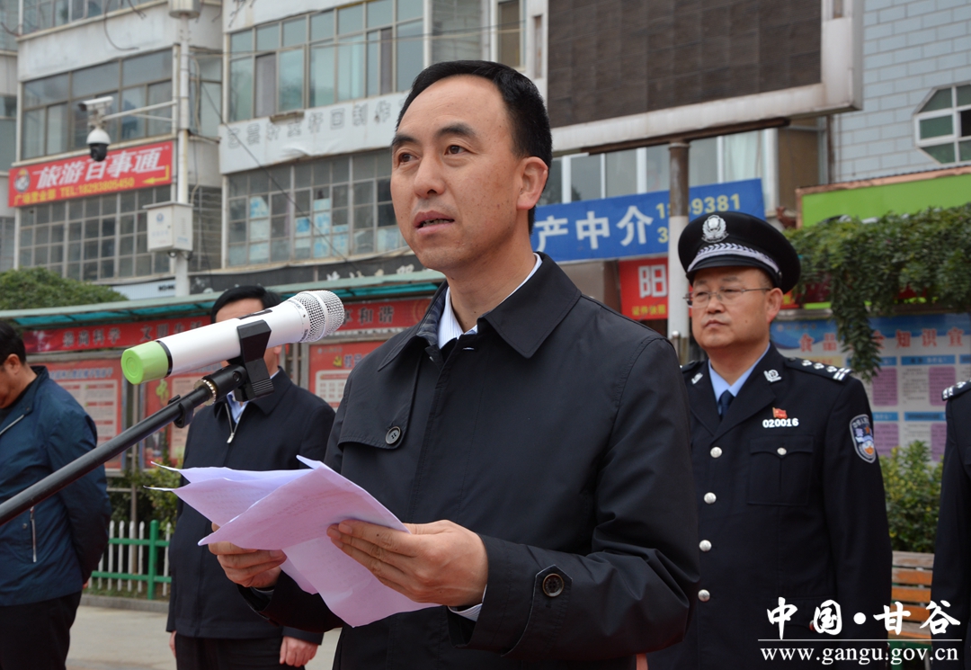 冯全敬主持启动仪式。活动中,孟晓龙作了讲话;县公安局负责人宣读了《甘谷县反恐怖工作领导小组关于开展“反恐怖主义宣传月”活动实施方案》;县公安局反恐防暴特警大队及大像山镇相关负责人作了表态发言。