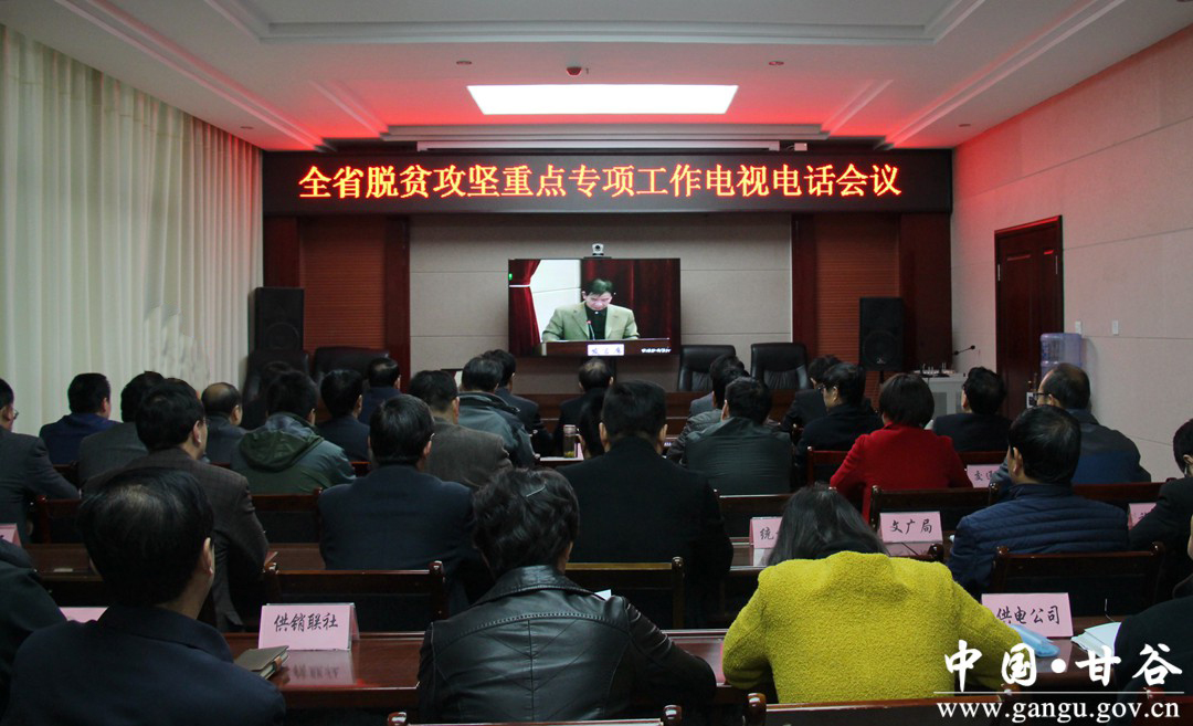 11月10日,全省脱贫攻坚重点专项工作电视电话会议天在兰州举行。省委副书记、省长唐仁健强调,要认真贯彻落实党的十九大精神,按照习近平总书记在深度贫困地区脱贫攻坚座谈会上的讲话精神和中央金融工作会议要求,以及省脱贫攻坚领导小组会议部署,切实增强脱贫攻坚的使命感、责任感和紧迫感,紧盯“两不愁、三保障”目标,尽快紧起弦来、行动起来,全力以赴、心无旁骛,拿出背水一战的决心,付出百倍千倍的努力,切实抓紧抓实脱贫攻坚“头号工程”,决战决胜全面建成小康社会。