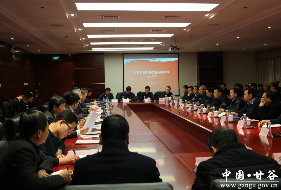 副区长杨灏,区政协副主席、华明街党委书记郑立;甘谷县委常委、组织部长冯建新,县人大副主任王金生、副县长朱德勇、县政协副主席陈旭出席座谈会。东丽区委组织部、区委党校、区交流办有关负责人及我县52名参训学员参加座谈会。