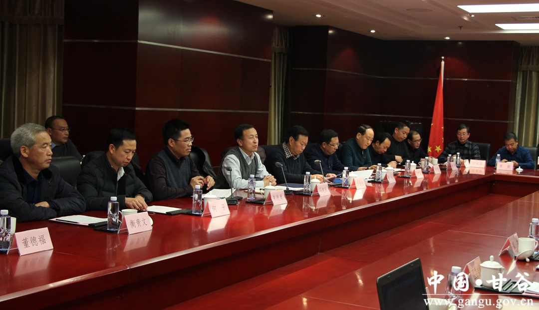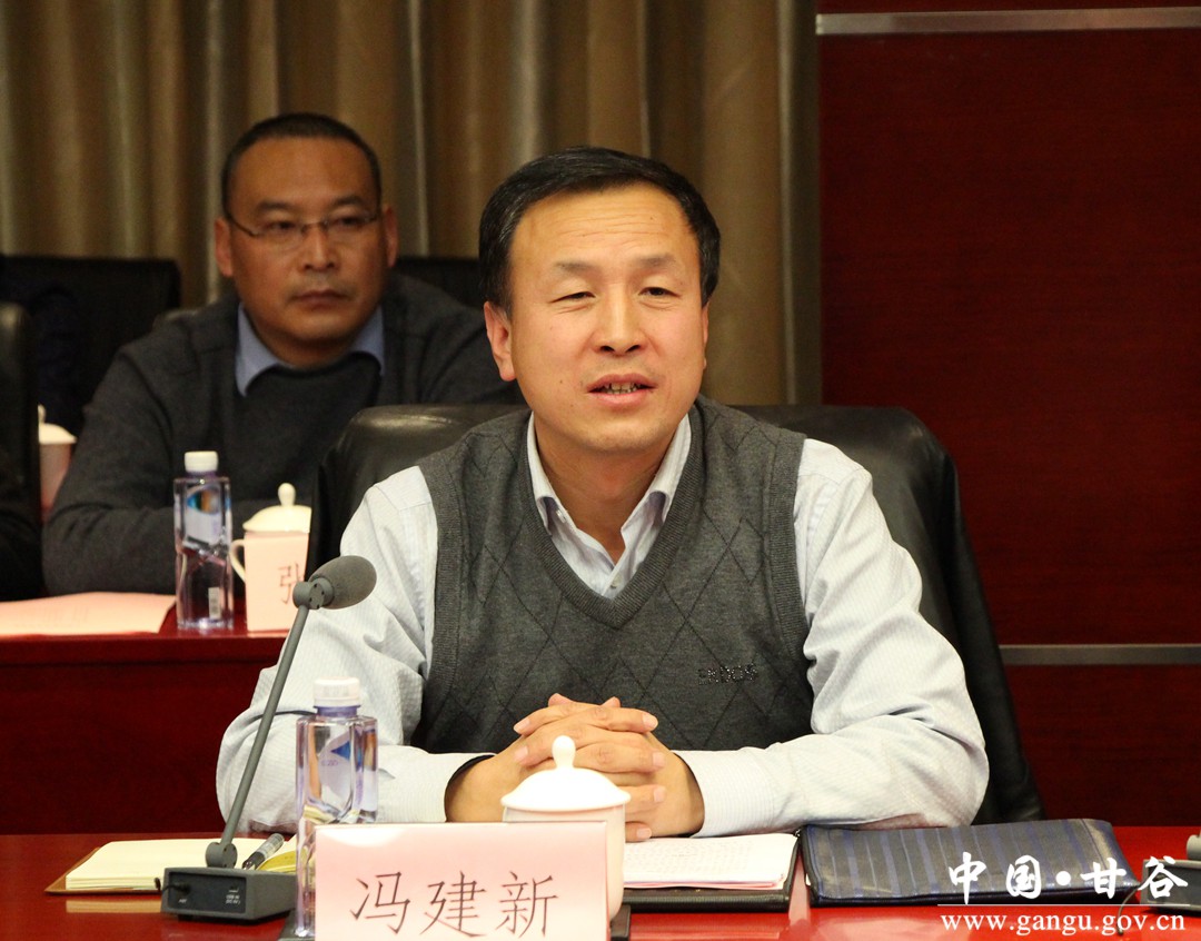 冯建新代表甘谷县委、县政府作了汇报发言,详细介绍了全县经济社会发展和东丽区对口帮扶甘谷县工作情况。