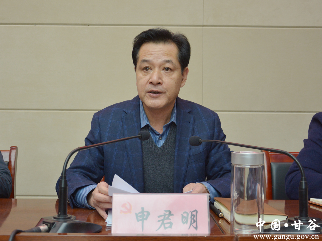 申君明要求,各乡镇、各相关部门要严格落实党政“一把手”负责制,主要负责人切实履行好第一责任人责任,对扶贫工作亲自过问、亲自部署、亲自督抓;班子成员和工作人员要认真履行工作职责,全力做好各自承担的任务,抓实抓好各项工作。各乡镇、相关部门思想上要高度重视,对市级验收中发现的问题要积极整改、全面解决。要吃透验收标准,弄清弄懂贫困退出验收和成效考评的原则、程序和要求,对照脱贫攻坚工作不足问题,查漏补缺,整改完善,确保顺利通过省上考核验收。要高度重视2017年度建档立卡信息更新和脱贫人口标识工作,统筹谋划,把握时间节点,加强部门衔接,确保脱贫人口和出列贫困村标注准确、贫困信息采集更新录入精准。