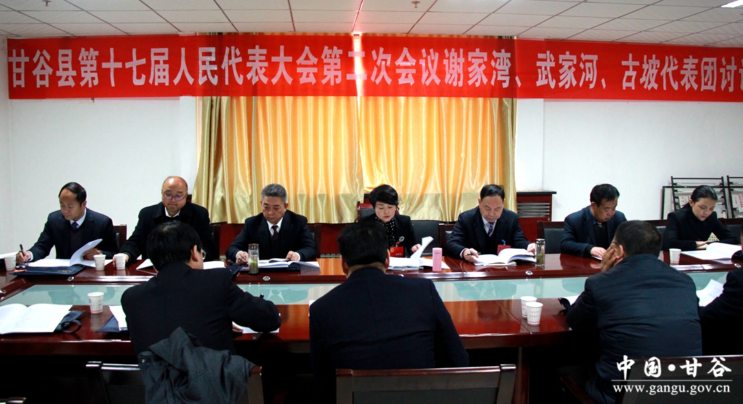 (谢辉、王志高、李富国、谢兴明、高丽参加谢家湾、武家河、古坡代表团审议)