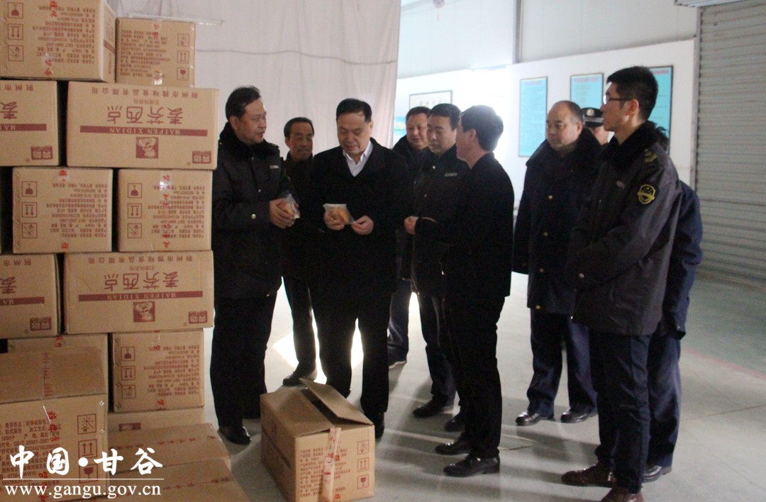 1月10日,甘谷县委常委、副县长王志高带领县食药监、工商、公安、质监等部门有关负责人检查冬季食品安全工作。