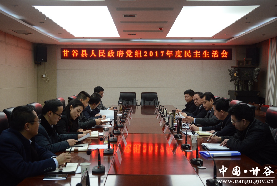 按照市、县委部署,2月8日,甘谷县政府党组召开2017年度民主生活会,会议紧扣“认真学习领会习近平新时代中国特色社会主义思想,坚定维护以习近平同志为核心的党中央权威和集中统一领导,全面贯彻落实党的十九大各项决策部署”的主题,紧密联系思想和工作实际,进行自我检查、党性分析、开展批评和自我批评,进一步增强县政府党组的凝聚力、向心力、战斗力。