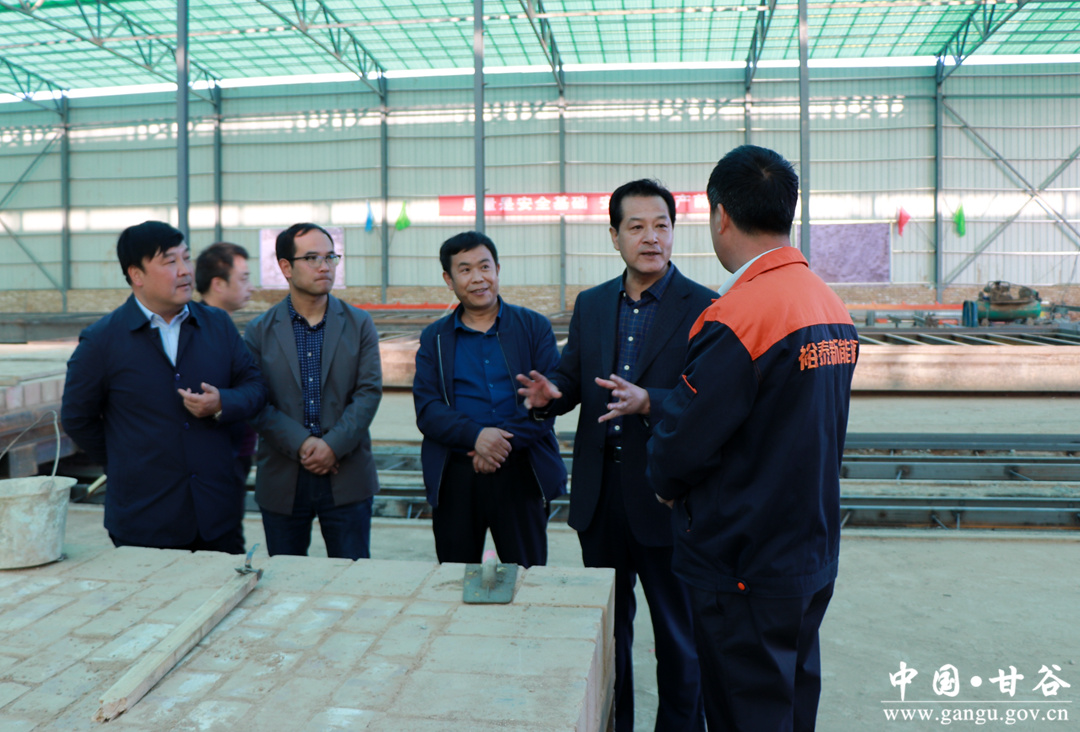 在甘肃裕泰新能源环保有限公司,申君明详细询问了解了新型多孔砖的制作流程,并向公司负责人现场宣讲环境保护、精准扶贫、产业结构调整等国家和省市县相关政策。他强调,要牢固树立环境保护意识,遵循节能、环保、发展的理念,力争打造一流的现代企业,为全县打赢脱贫攻坚战填砖增瓦。