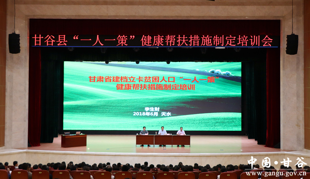 6月9日,甘谷县召开建档立卡贫困人口“一人一策”健康帮扶措施制定培训会。会议邀请甘肃省中医院消化科主任医师、博士李生财就健康扶贫“一人一策”帮扶措施制定工作进行深入细致的培训。县委常委、宣传部长张庆元出席会议并讲话。县卫计局、民政局、人社局、残联、各乡镇卫生计生办、卫生院相关负责人及县、乡、村签约医生和计生专干,共计800多人参加会议。