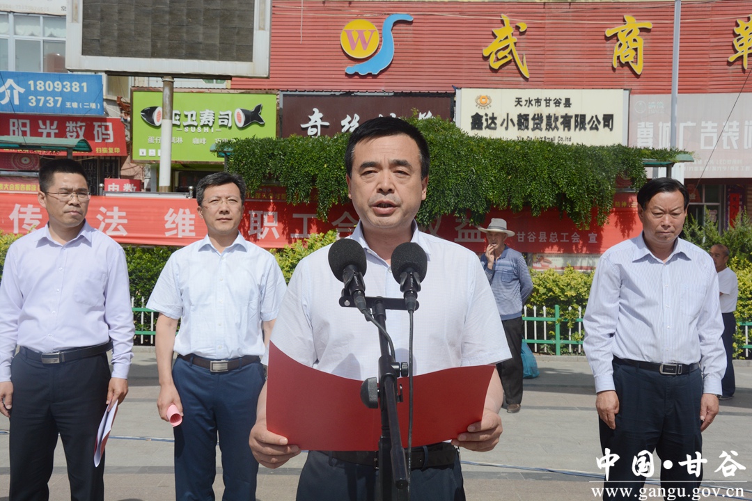 6月14日,天津东丽区重点企业甘谷专场招聘会在大十字广场隆重举行。天津市东丽区人社局副局长刘洪亮;县委副书记任佩光,县委常委、副县长朱德勇,县人大常委会副主任王金生,县政协副主席郭长胜及县人事局负责人出席招聘会开幕仪式。县委常委、副县长朱德勇主持开幕仪式。