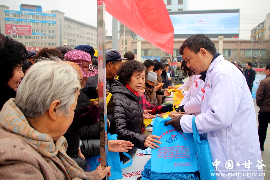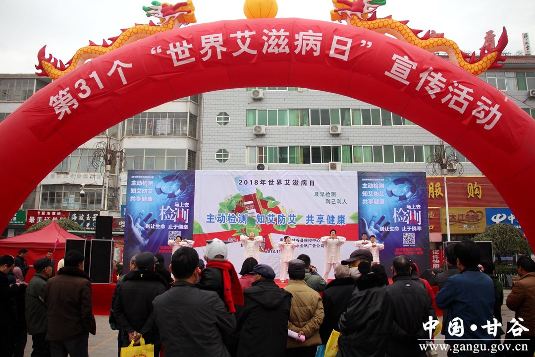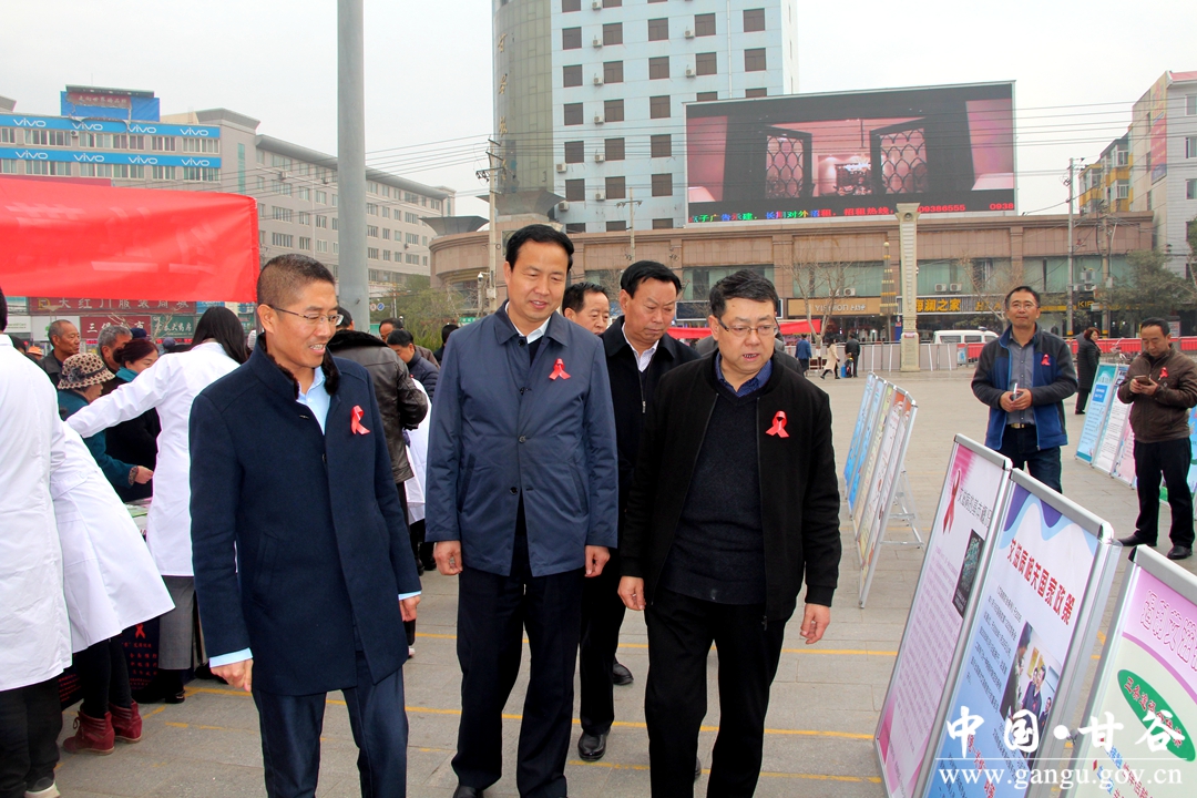 在第31个“世界艾滋病日”到来之际,11月30日上午,甘谷县组织县防艾委、卫计局、县人民医院、县疾控中心、县妇保院、大像山镇卫生院在大什字广场举行艾滋病宣传日主题活动。县委常委、宣传部长张庆元,县人大常委副主任王金生,副县长牛武军,县政协副主席董成斌出席活动,现场指导抗艾工作。