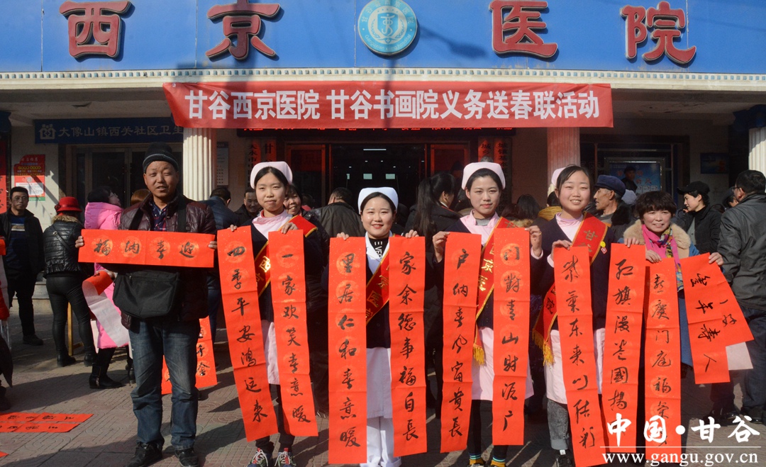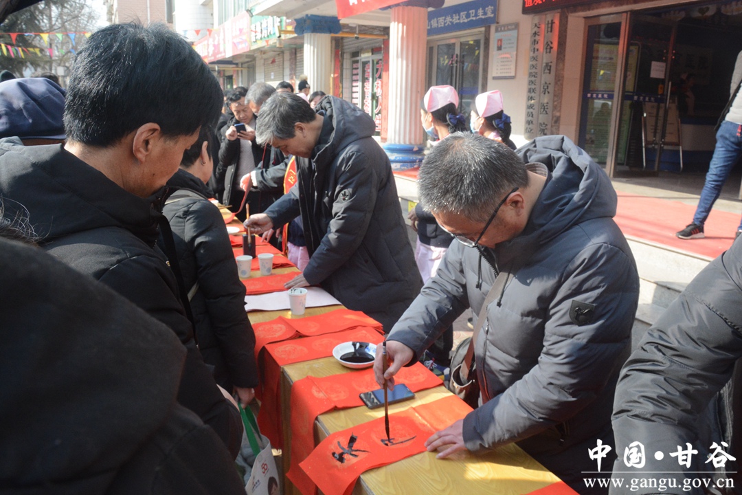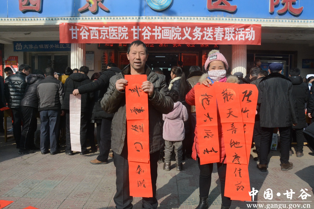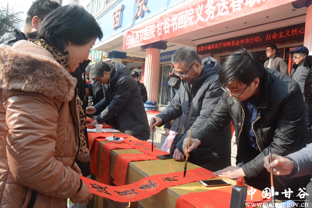 1月23日,甘谷西京医院、甘谷书画院联合开展“迎新春、送春联”活动,为群众免费写春联、送祝福。