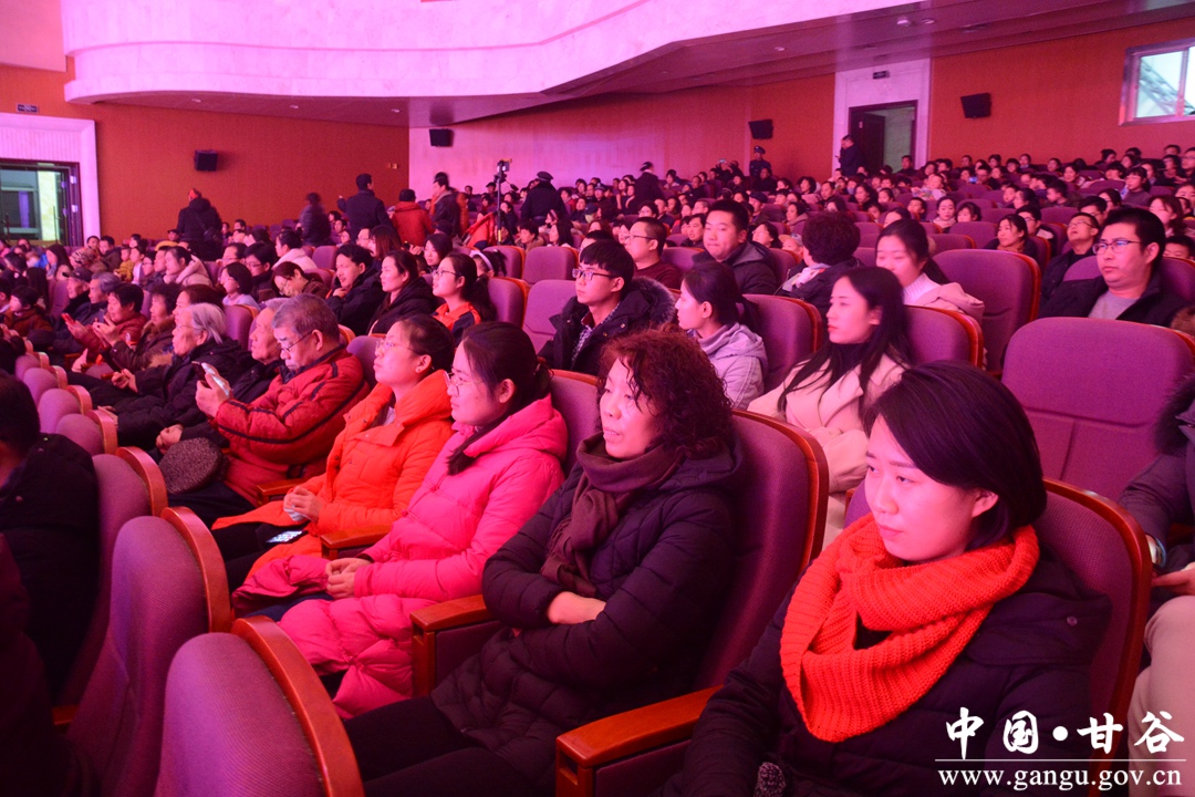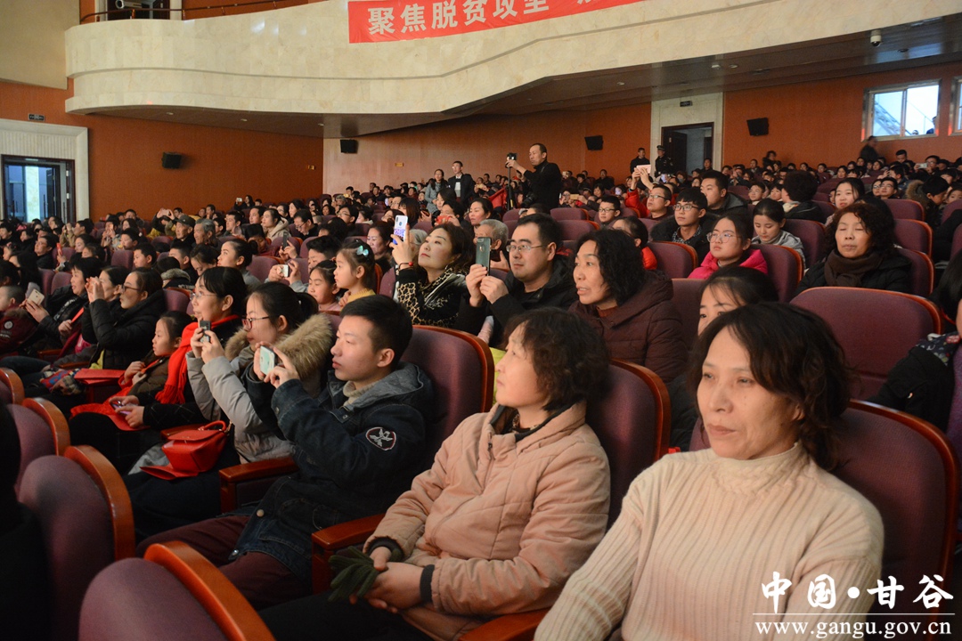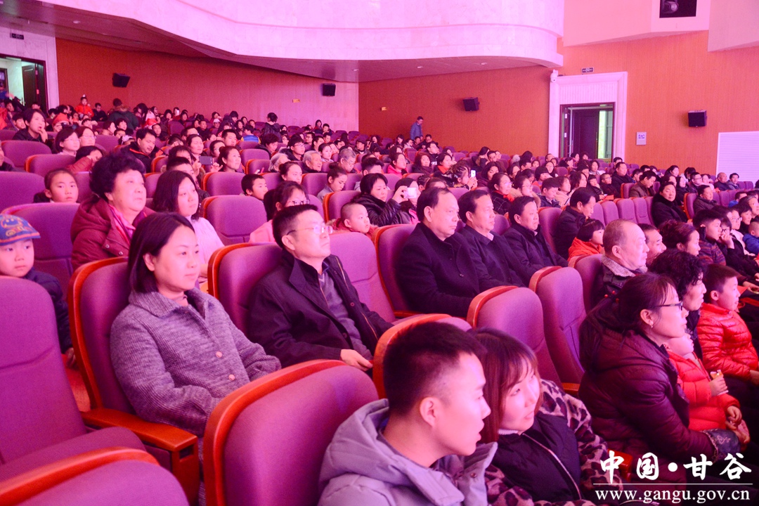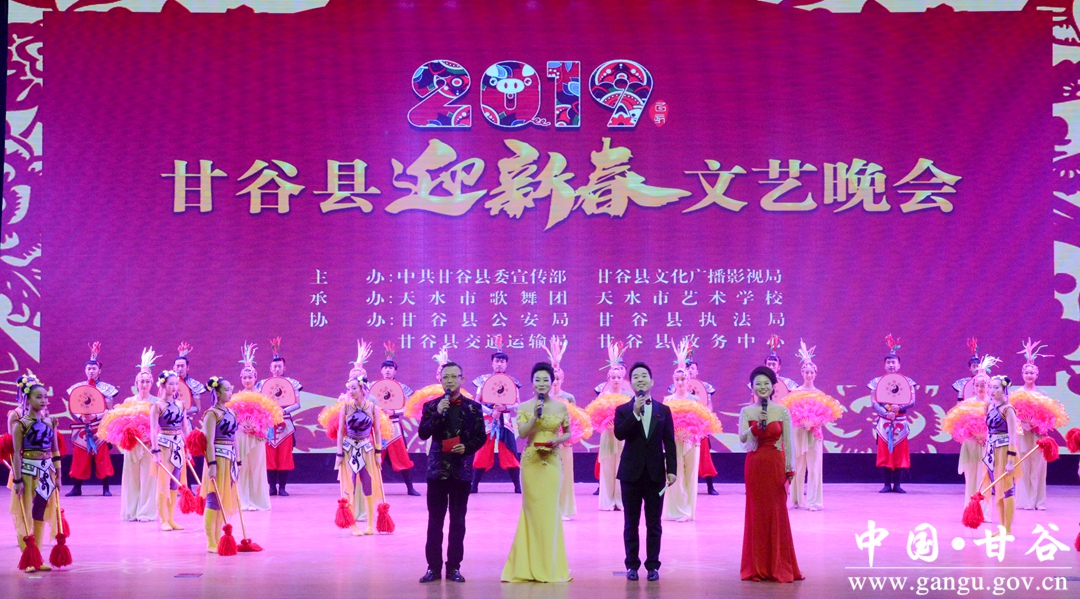 紫气凝香攒福运,金猪献瑞唱春歌。1月29日晚,甘谷大剧院内彩灯闪耀,歌声飞扬,掌声阵阵,欢悦满堂,甘谷县2019年迎新春文艺晚会在这里隆重上演。县委常委、宣传部长张庆元,县委常委、副县长王志高,县人大常委会副主任刘仰贤,副县长牛武军、李兰平、李萍等县领导和各界群众一起观看演出,共迎新春佳节。