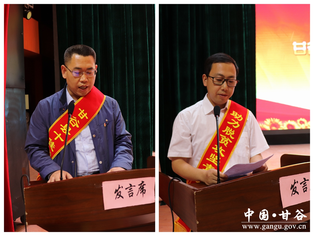 (十佳创业青年代表王焕文、助力脱贫攻坚青年标兵代表马军峰作获奖发言)