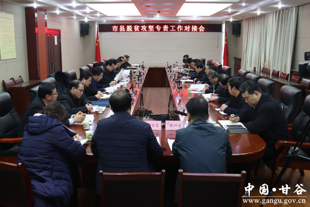 12月16日,市领导赵卫东带领市直相关专责部门负责同志来到甘谷县,通过召开市县脱贫攻坚专责工作对接会议,就县、乡(镇)、村对省委书记林铎讲的12个方面工作整改落实情况,三落实、三精准、三保障相关资料和台账,到户产业资金方面问题整改落实情况,财政扶贫专项资金绩效评价问题整改和台账资料完善情况,易地扶贫搬迁方面问题整改和台账资料完善情况,“两不愁三保障”方面问题整改落实和台账资料完善情况,兜底保障方面问题整改和台账资料完善情况,帮扶方面问题整改落实情况等18个方面的内容进行了督查,对甘谷县当前脱贫攻坚工作进行督导,确保各项任务全面完成。县委书记申君明、县委副书记孟晓龙及县脱贫攻坚专责组负责人参加对接会。