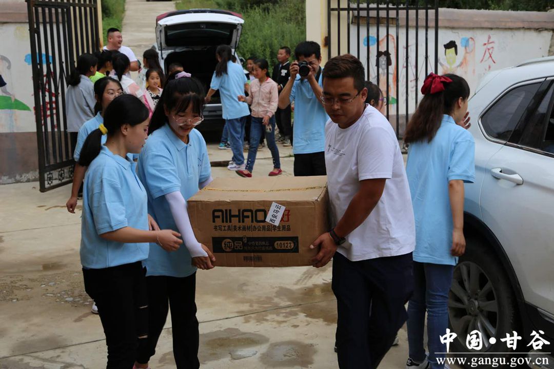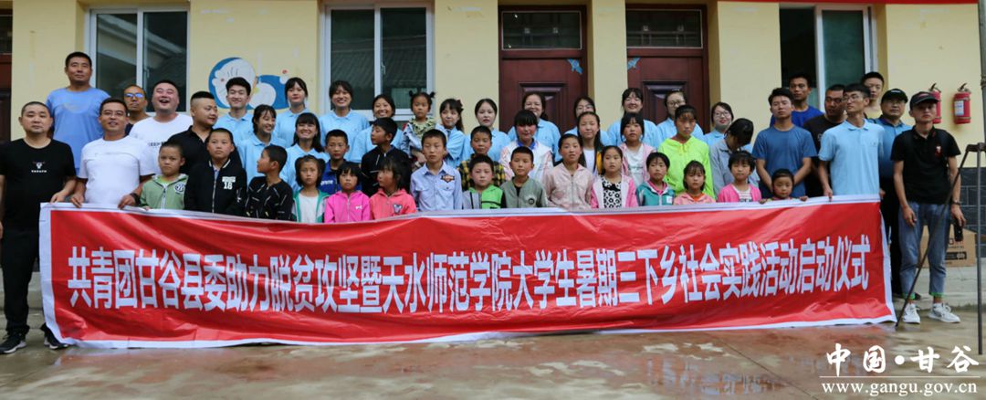 8月5日,共青团甘谷县委助力脱贫攻坚暨天水师范学院大学生暑期三下乡社会实践活动启动仪式在磐安镇马家滩村举行,共青团甘谷县委、萤火虫公益、天水师范学院支教团队、甘谷县农小胖农品供应链公司、景云阁茶楼、甘谷在线等组织负责人、社会爱心人士及留守儿童共计60余人参加。