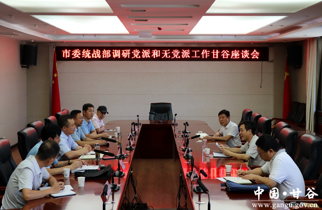 8月27日,市委统战部常务副部长焦新德带领调研组,来甘谷县调研统一战线重点工作开展情况。县委常委、统战部部长王明,县委常委、大像山镇党委书记张俊义一同调研;县人大常委会副主任、县党外知识分子联谊会会长陈旭参加座谈会。