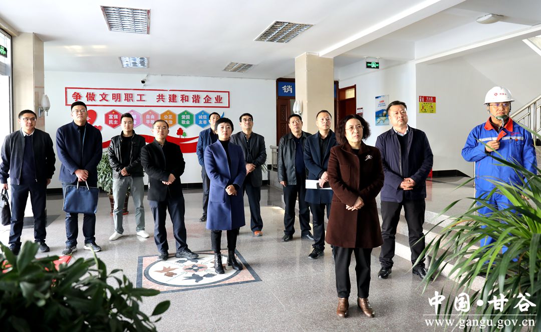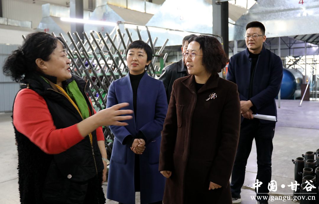 近日,市委常委、统战部部长王燕带领市委统战部、市工信局、市统计局、市市场监管局、市工商联相关负责人,赴甘谷县调研工业经济和民营经济运行发展情况。她强调,要认真学习贯彻党的十九届五中全会精神,按照省市的部署要求,加大工作力度,加强分析调度,积极鼓劲加压,确保全面完成全年目标任务,为“十三五”圆满收官,“十四五”良好开局奠定坚实基础。