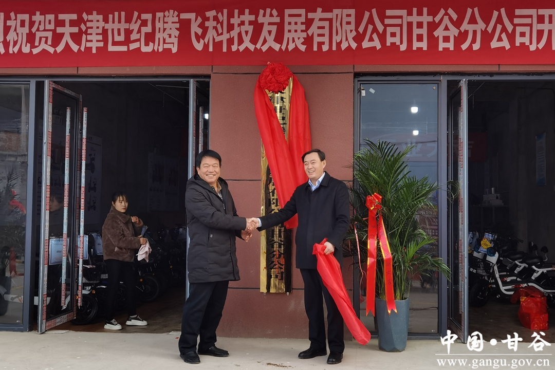11月29日,天津市东丽区2020年东西部扶贫协作引进企业天津世纪腾飞发展有限公司甘谷分公司在甘谷县新兴镇正式开业运营,副县长杜兴出席了开业仪式。
