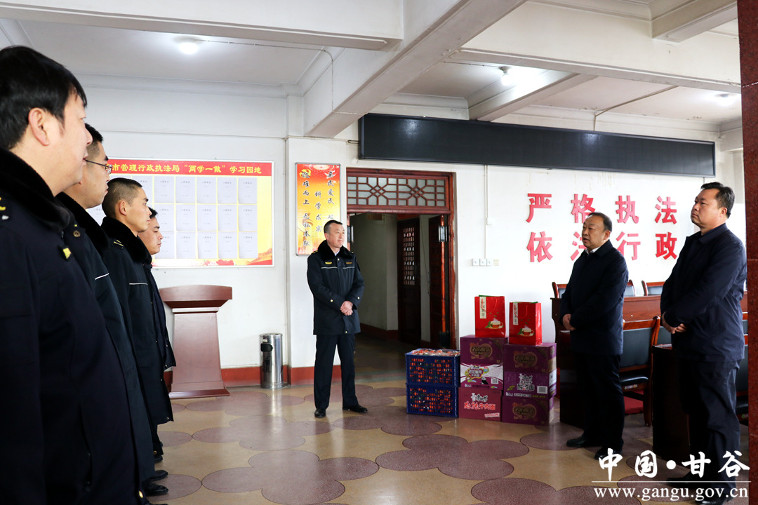 2月9日,甘谷县委副书记、县长吴健先后来到综合执法局、电力公司、供热公司、自来水公司开展节前慰问,向奋斗在一线的工作人员,送上节日的问候和亲切的祝福。县委常委、副县长王明一同慰问。