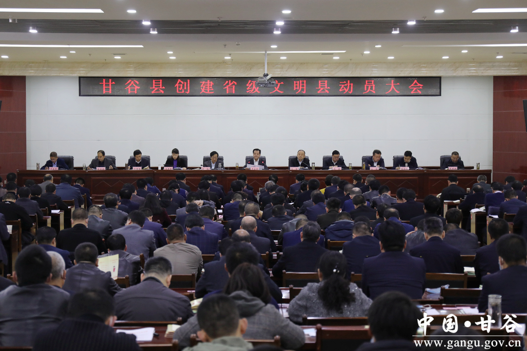 3月8日,甘谷县召开创建省级文明县动员大会。市人大常委会副主任、县委书记申君明出席会议并讲话。他强调,全县上下要紧紧围绕举旗帜、聚民心、育新人、兴文化、展形象的使命任务,统一思想、坚定信心、振奋精神,举全县之力,集全民之智,全力以赴创建省级文明县城。
