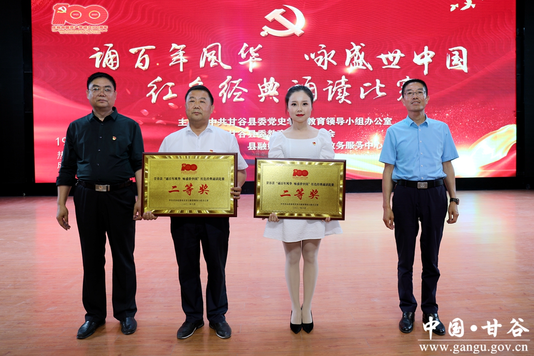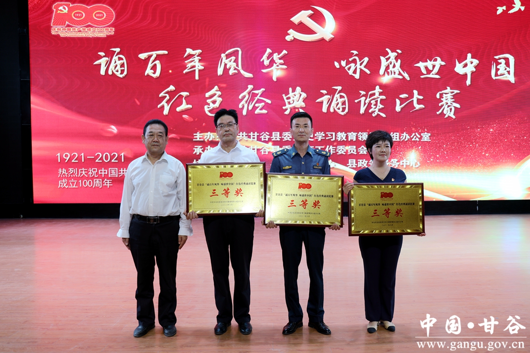 为庆祝中国共产党成立100周年,丰富党史学习教育载体,推动党史学习教育学深做实,厚植全县党员干部群众爱党、爱国、爱社会主义的情感,奋力推动全县“十四五”开好局、起好步。6月21日,甘谷县在大剧院举行“诵百年风华 咏盛世中国”红色经典诵读比赛。县委常委、宣传部部长王亚梅,县人大常委会副主任颉明军,副县长牛武军,县政协副主席董德福出席活动并为获奖单位颁奖。