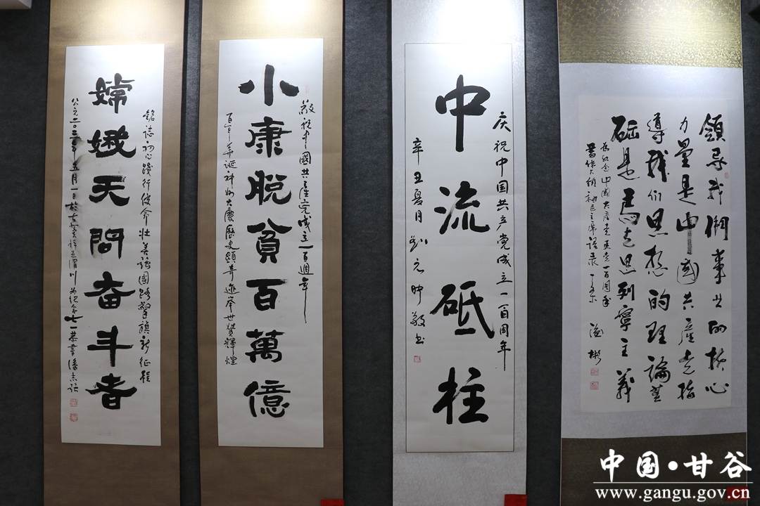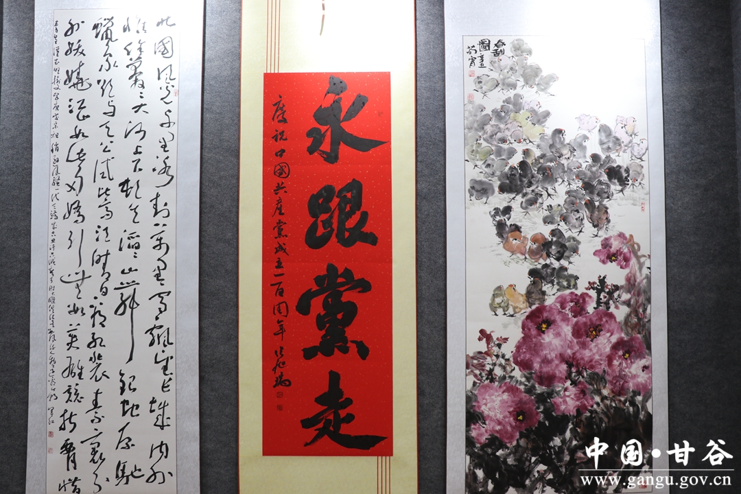 马骥说,举办庆祝中国共产党成立100周年书画作品展,是县政协开展党史学习教育、推进书香政协建设的一项重要内容,是彰显政协特色优势、促进书画联谊交流的一次重要活动。这些书画作品,全面展示了在党的坚强领导下甘谷人民进行革命、建设、改革的壮美画卷,唱响了共产党好、社会主义好、改革开放好、伟大祖国好、美丽家乡好的时代主旋律,表达了全县人民对中国共产党百年华诞的深情祝福。