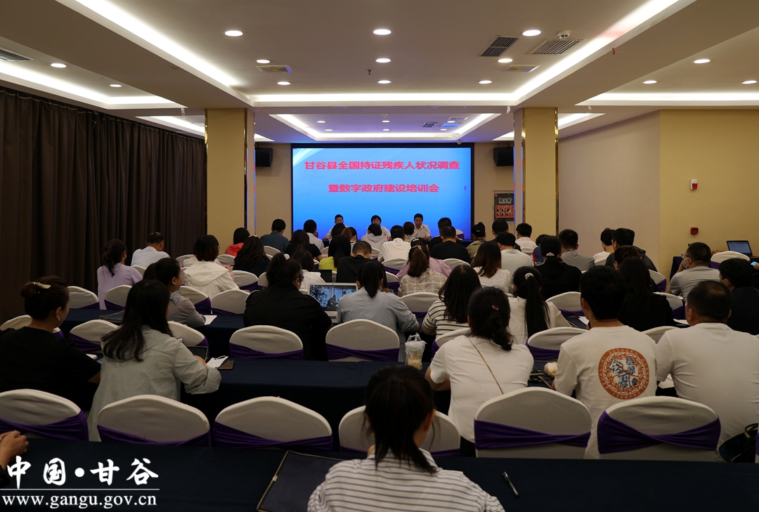 8月25日,甘谷县举行持证残疾人基本状况调查暨数字政府建设培训会。副县长范慧出席开班仪式并讲话。县残联班子成员、各股室负责人和各乡(镇)残联理事参加培训。