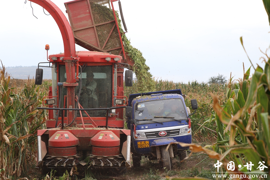 玉米地里,大型农机来回穿梭,不一会儿粉碎好的青贮玉米就装满了农运车。据了解,这里的3000亩青贮玉米目前已基本收割完,经过一定的工艺处理后,将作为饲料分批次销往周边市县。