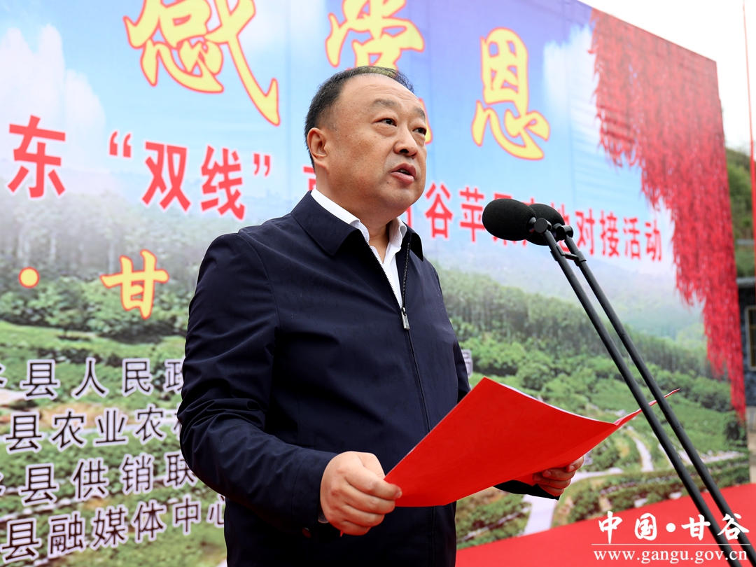 孙忠平说,这次对接活动的成功举办,必将进一步提升甘谷农特产品的知名度、美誉度和影响力,对推动我县农业特色产业发展和助农增收走深走实具有十分重要的意义。县委、县政府将以这次活动为契机,持续做大做强特色优势产业,一如既往地加强与各终端市场的交流合作,架起甘谷优质果品和消费者之间的桥梁,以更加优质的服务为广大客商和消费者提供花牛佳果。同时希望广大果品经销商和各界朋友,能够通过本次活动,更加深入地了解甘谷农特产品的品质优势、品牌优势和市场优势,深入挖掘市场潜力,大力宣传推介甘谷苹果,也衷心期望通过本次活动的牵线搭桥,企业间广泛交流,加深彼此友谊,达成合作意向,签订认购协议,让甘谷苹果走向全国,走进千家万户,助力全面实施乡村振兴。