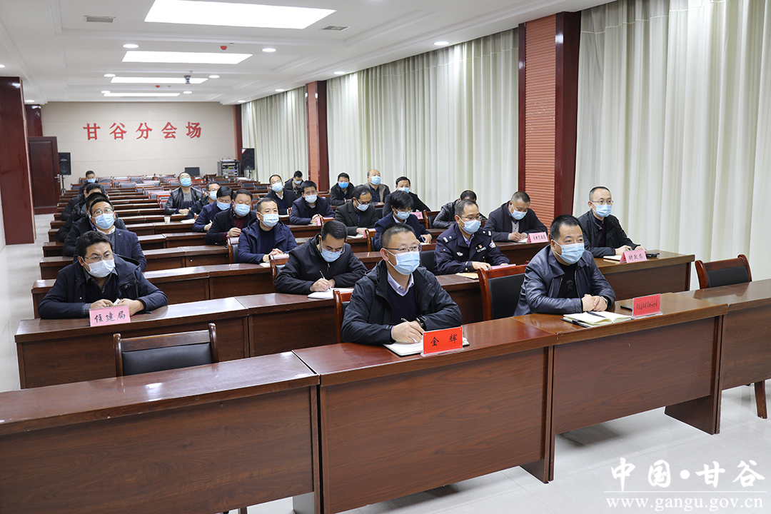 县政府党组成员金辉及各乡镇、县直有关部门负责人在甘谷分会场收听收看会议。