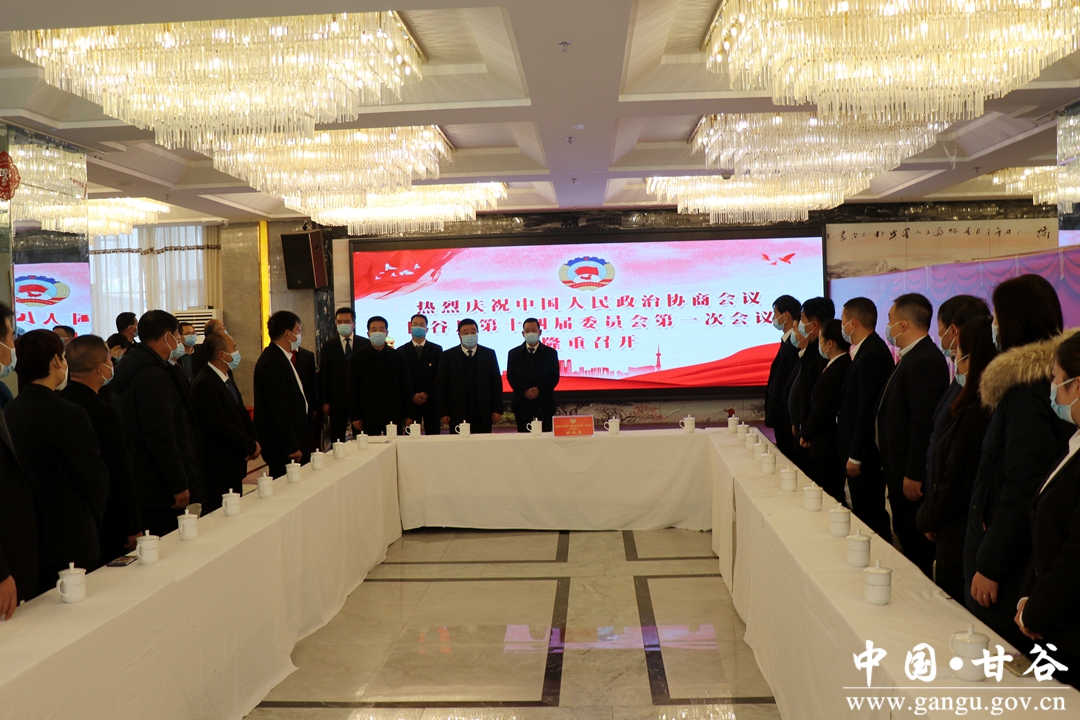 11月26日上午,甘谷县政协主席马骥、县政协党组书记曹明忠来到县政协委员驻地,看望慰问参加县政协十四届一次会议的政协委员,希望全体政协委员集中精神,认真履职尽责,以饱满的政治热情和良好的精神状态开好此次会议。县政协副主席董德福、田小龙、魏杰、蒋文、郭有生一同慰问。