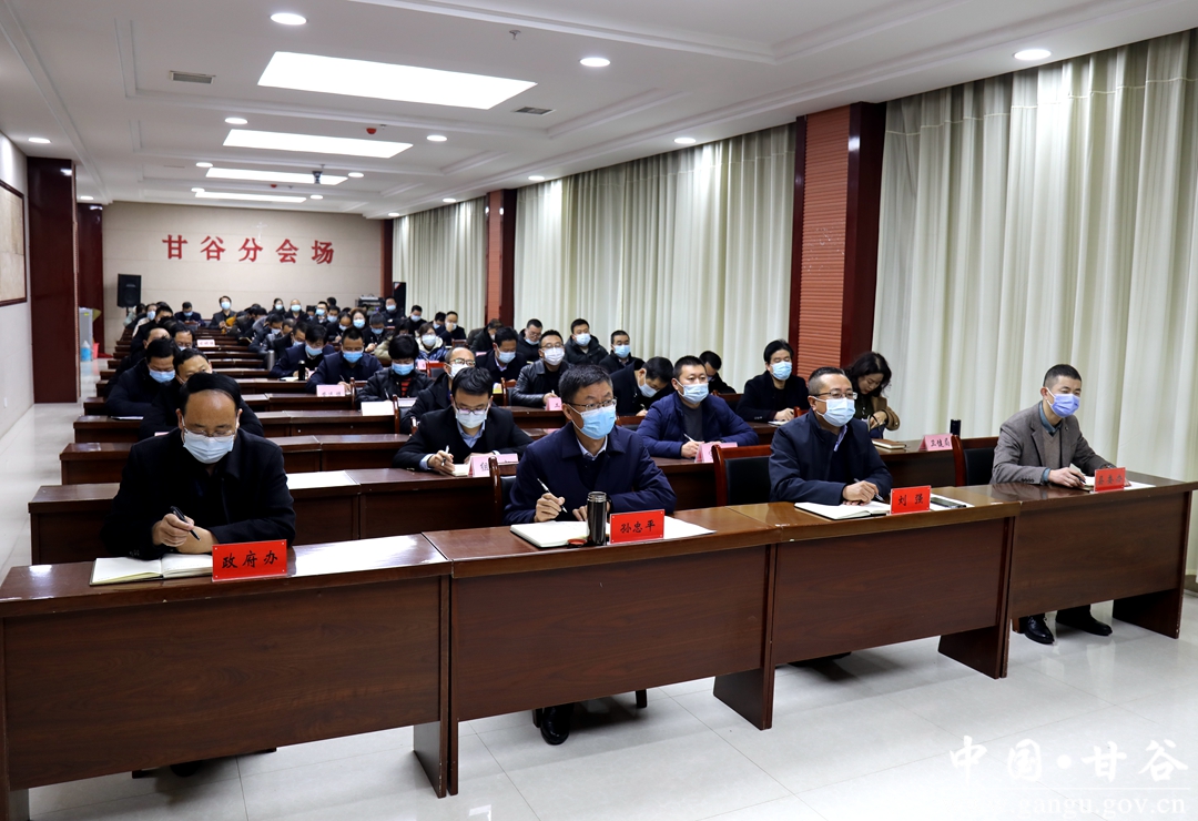 县委副书记、县长孙忠平,副县长刘强在甘谷分会场收听收看会议。