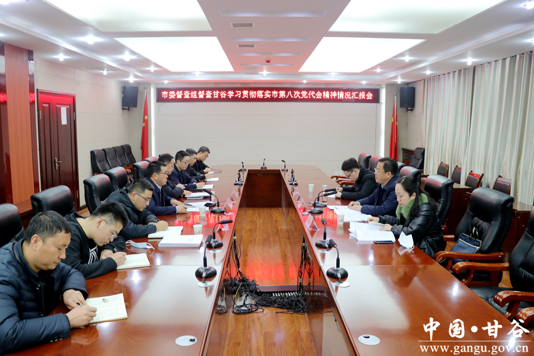 督查组指出,市第八次党代会是在“两个一百年”奋斗目标历史交汇的关键节点、开启全面建设社会主义现代化新征程的重要时刻召开的一次十分重要的会议,会议全面总结了过去五年我市经济社会发展成就,谋划部署了今后五年天水发展目标任务。要高度重视,切实抓好市第八次党代会精神的学习贯彻,深入学习领会精神实质,学习主题思想,学习奋斗目标,学习成功经验。要理论联系实际,抓紧贯彻落实,真正把会议精神学深悟透,谋划好发展目标,制定好落实措施,选准突破口,把学习成果转化为工作动力。要强化宣传引导,通过传统媒体与新媒体相融合的方式,多角度,多措并举推进,将学习贯彻党的十九届六中全会精神与市第八次党代会和市“两会”精神相结合,营造浓厚氛围,奋力凝聚起建设社会主义现代化天水篇章的强大精神动力。