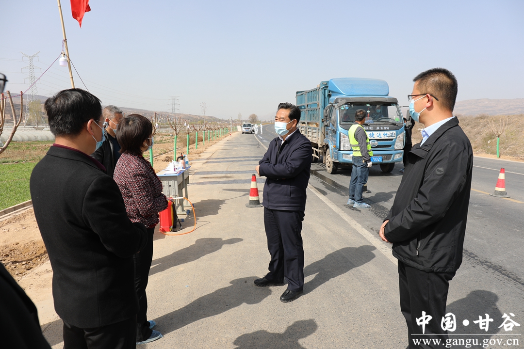 在天定高速公路磐安出口和310国道甘武交界处,索鸿宾详细了解扫码测温、核验通行、值班值守、异常人员处置流程、值班值守等疫情防控措施落实情况,叮嘱一线工作人员要在做好自身防护的情况下,压实责任到人、到岗,做好疫情防控服务工作。他强调,要始终紧绷防疫之弦,严防死守,坚决克服麻痹思想、侥幸心理,以更加有力的举措抓实抓细属地出入口疫情防控各项工作。要从严从紧从实排查,做到“不漏一车、不漏一人”,确保不留死角。要合理组织车辆分流,科学优化检疫查验流程、提高查验排查效率,保障交通安全畅通。要坚持高效便捷温馨服务,用心用情做好服务保障工作,让疫情防控既有“力度”又有“温度”。